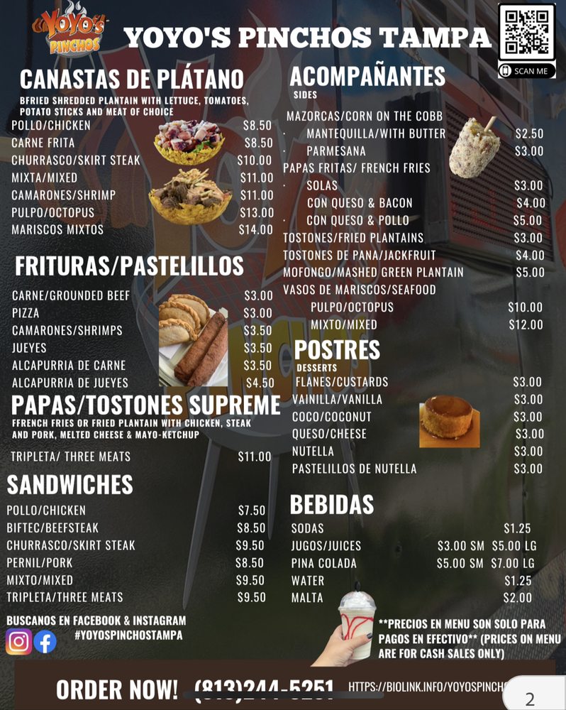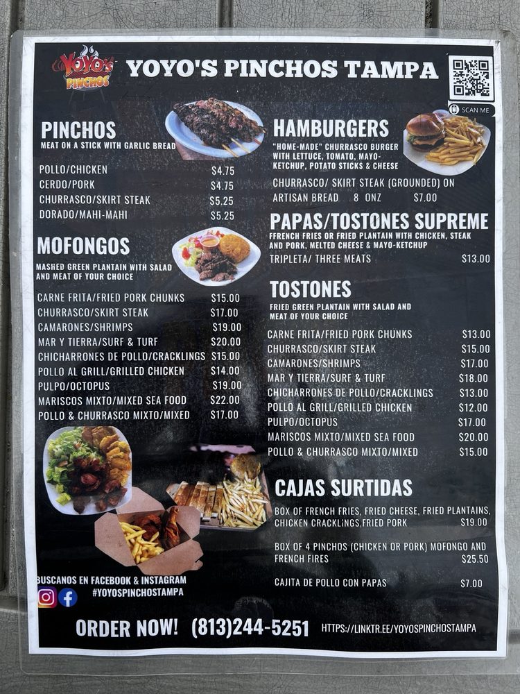 Yoyos Pinchos Tampa Menu